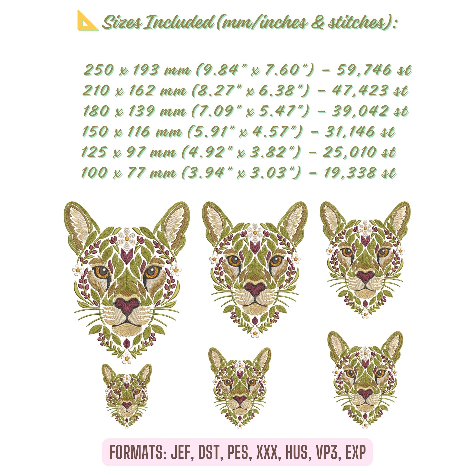 Big Cats Embroidery Bundle, Tiger, Lion, Puma, Jaguar Head Floral Machine Embroidery Design Set, Jungle Animal Embroidery Pack, Wild Cat PES
