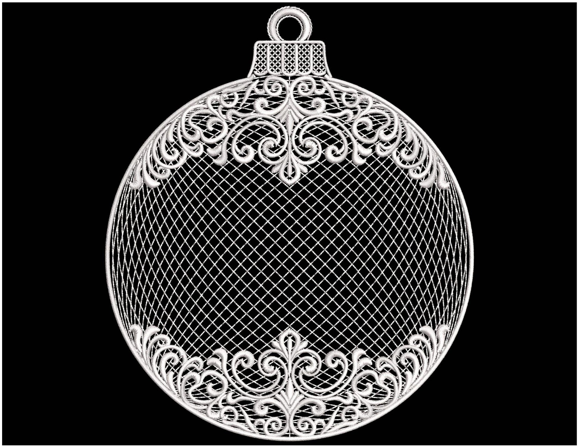 This elegant New Year’s Ball features fine lace-style swirls, ornamental patterns, and a delicate mesh texture – a timeless holiday design for your festive creations.