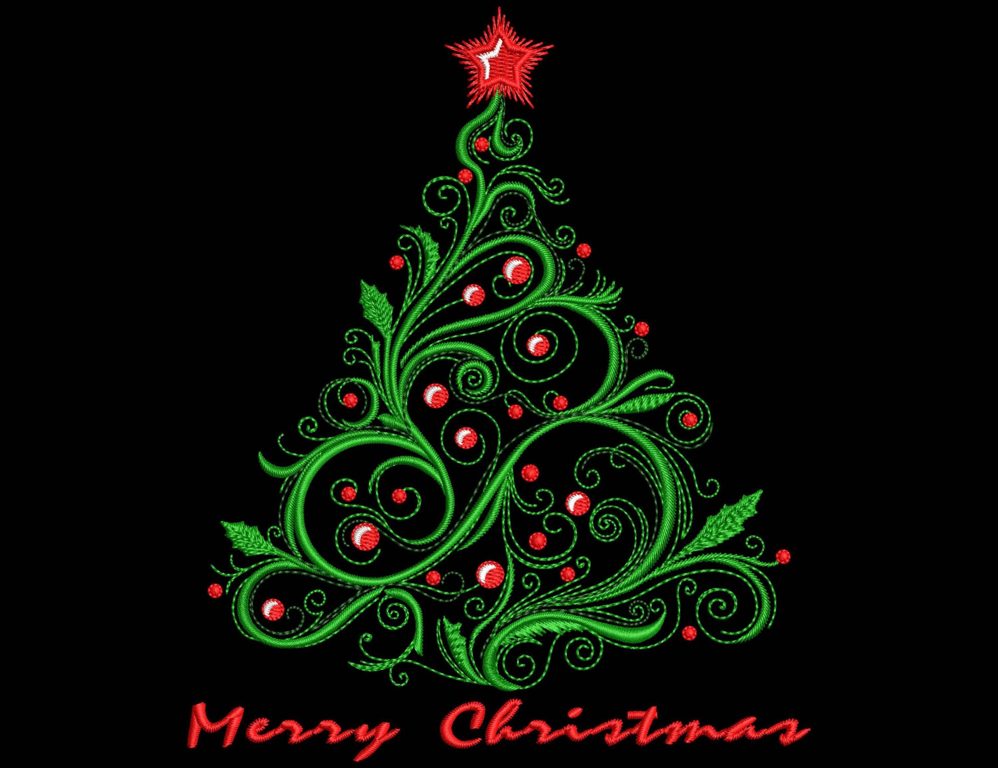 β¨ Celebrate the holiday season with this stylish Christmas tree embroidery design, featuring beautiful swirls, festive ornaments, and a cheerful "Merry Christmas" text! Perfect for decorating stockings, tablecloths, napkins, and festive clothing.