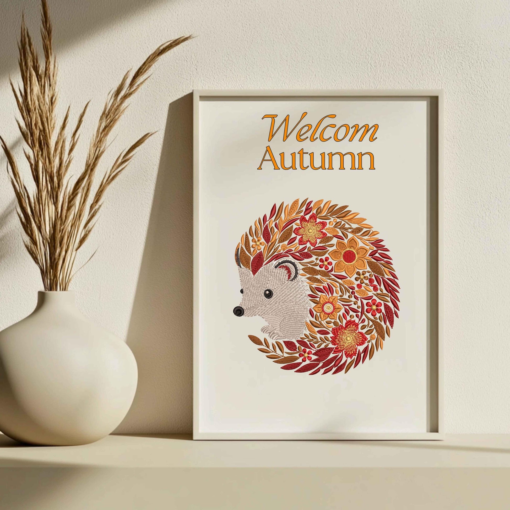 Autumn Hedgehog Embroidery Design β Whimsical Fall-Inspired Embroidery File ππ¦