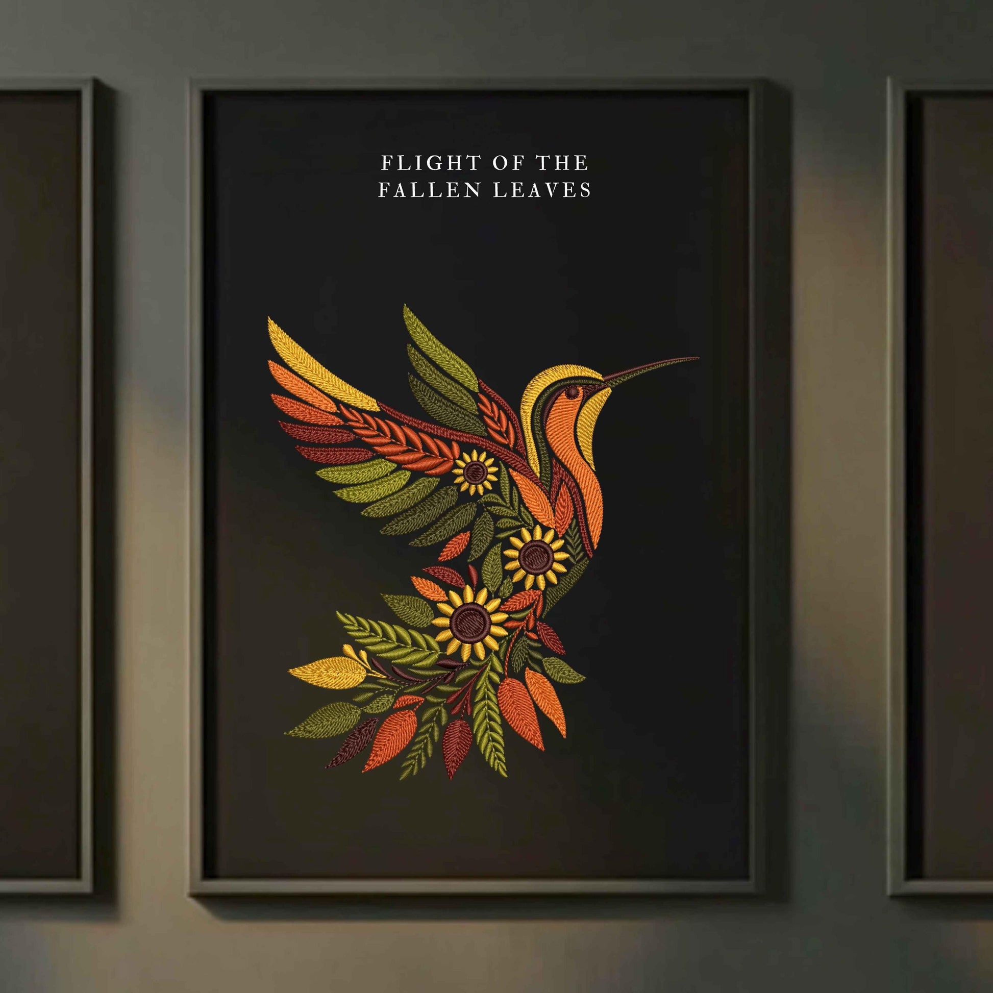 Fall-Inspired Hummingbird Embroidery Design With Sunflowers, Autumn Embroidery Perfect for Fall Crafts & Gifts, Bird Embroidery Pattern PES