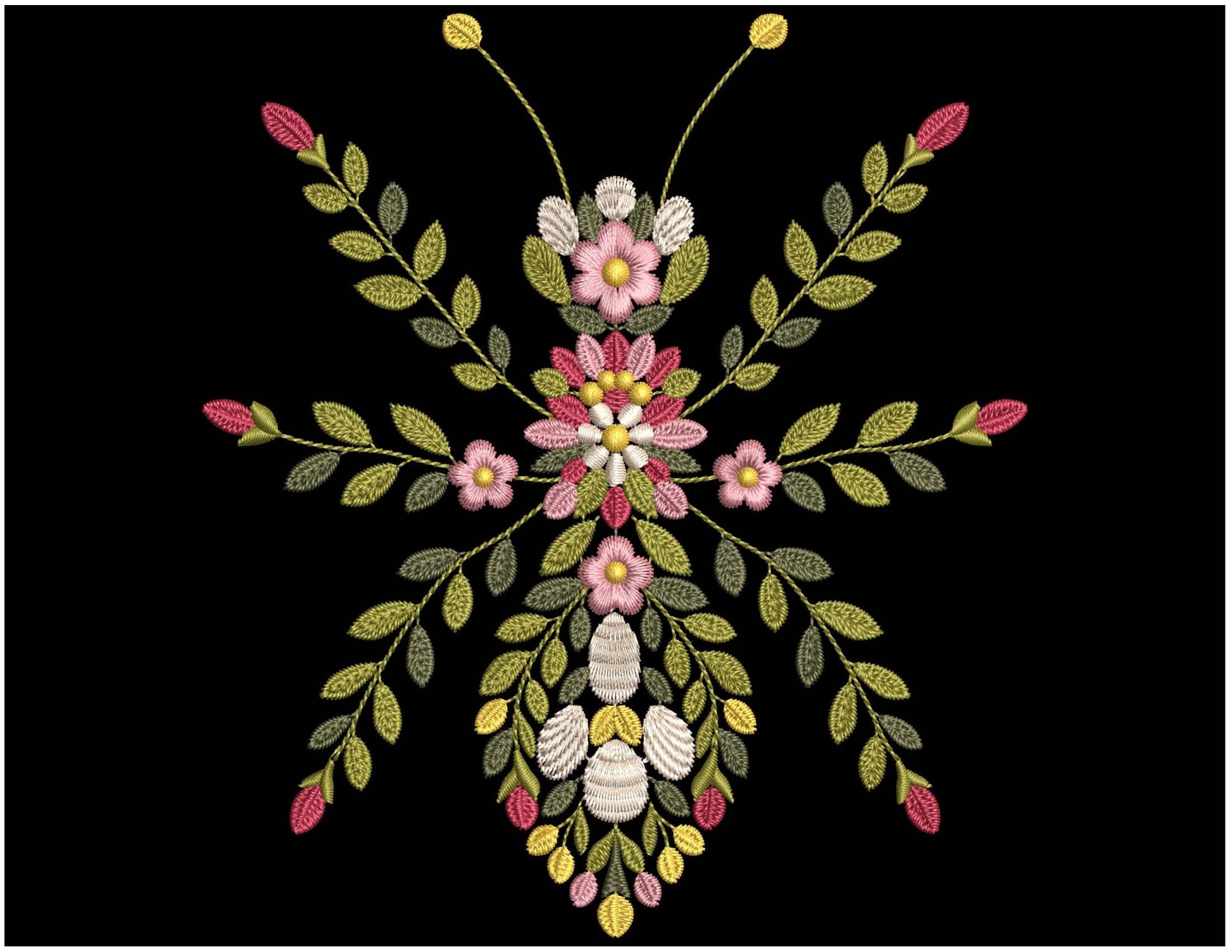 Floral Ant Machine Embroidery Design, Nature Bug Insect Embroidery PES, Botanical Insect Pattern for Unique Apparel, Ant Pattern PES DST jef