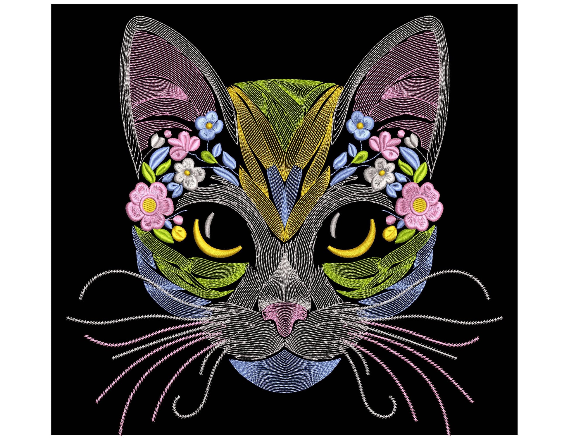 Floral Cat Machine Embroidery Design, Cat Pattern File PES DST JEF, Gifts For Pets Lovers, Animal Embroidery, Instant Download 7 sizes
