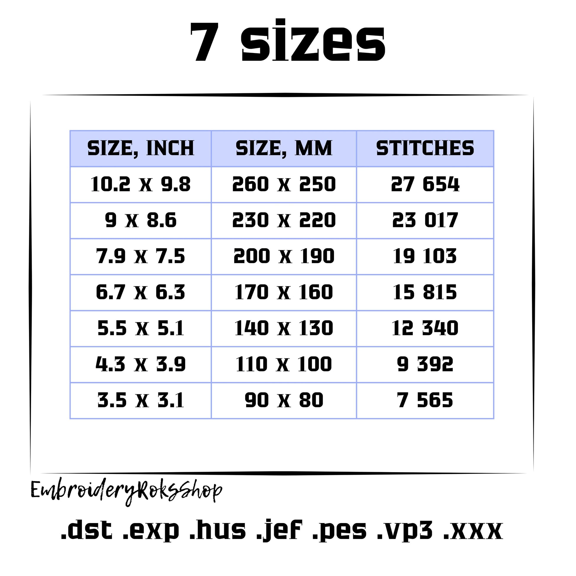 FORMATS: DST, EXP, HUS, JEF, PES, VP3, XXX.
