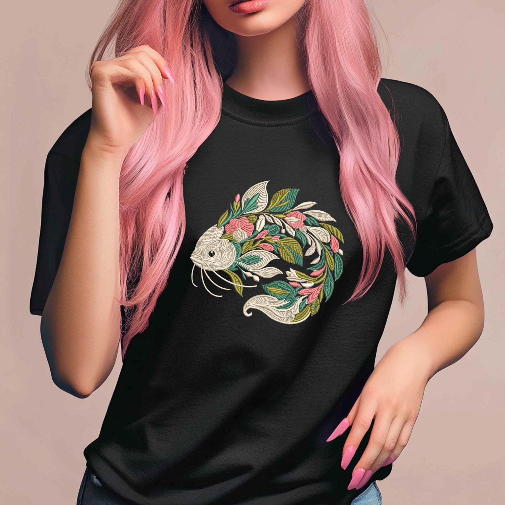 π£ Floral Catfish Embroidery Design β Botanical Elegance for Your Machine! πΏ