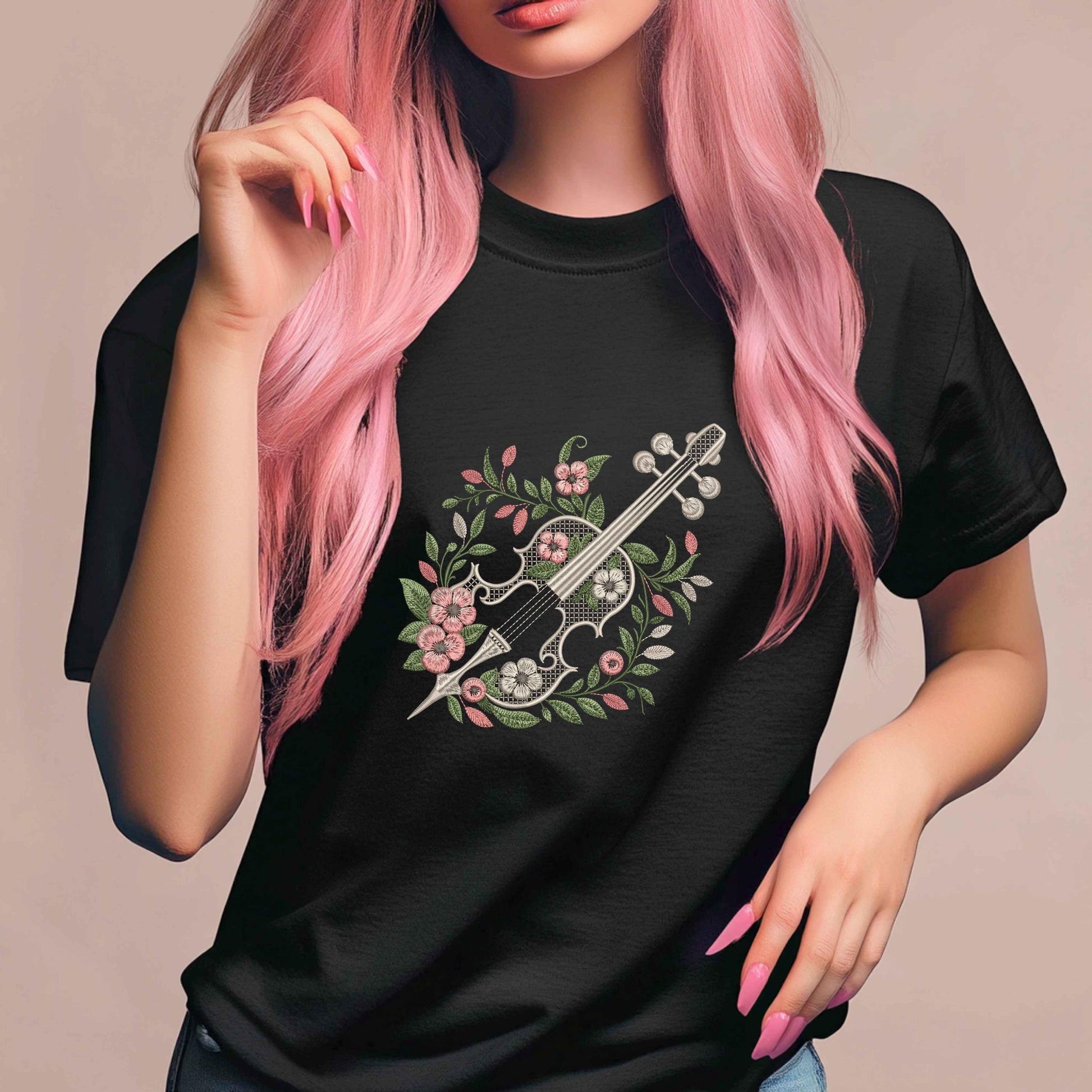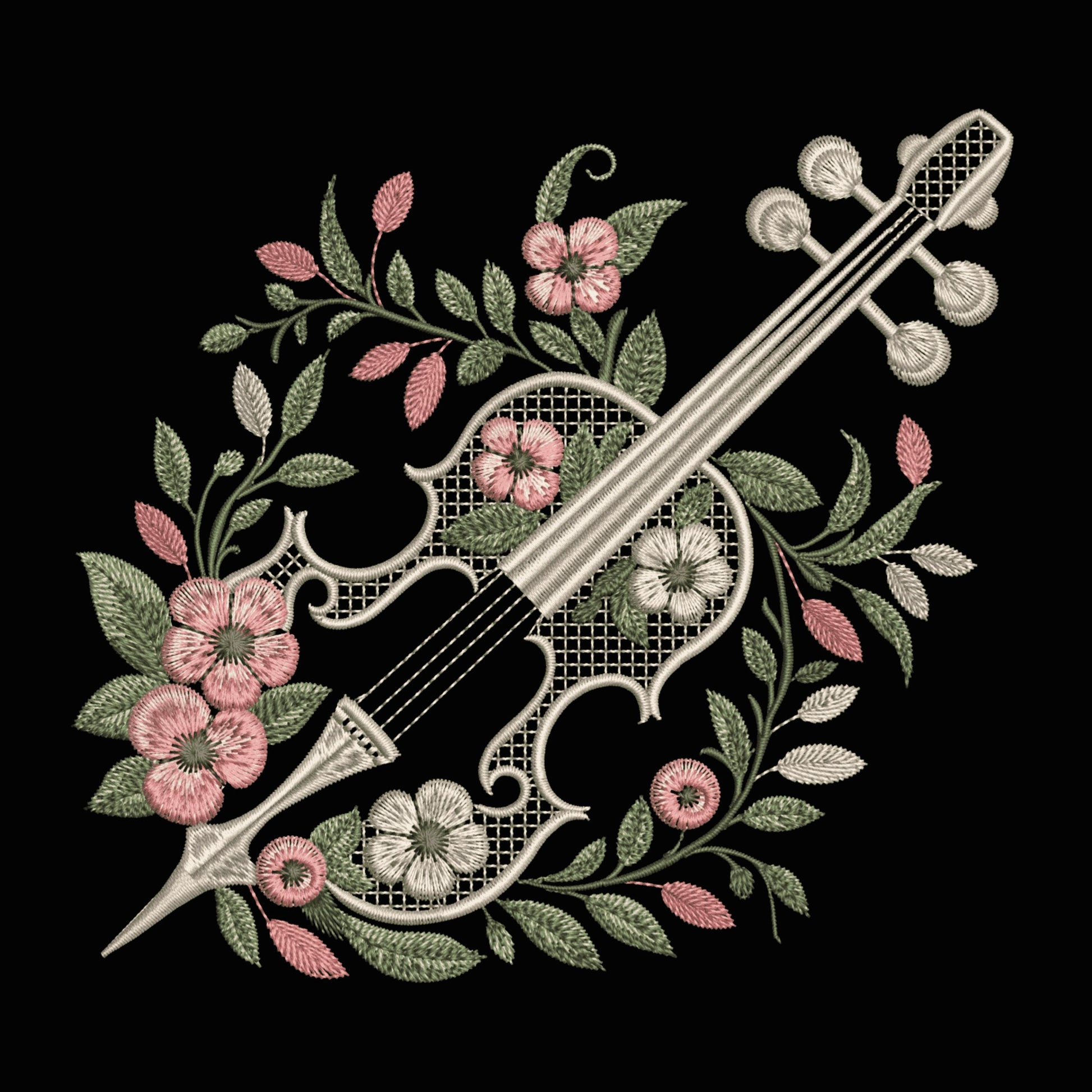 Celebrate the harmony of music and nature with this highly detailed floral cello embroidery design π»πΏ. The elegant silhouette of a cello is richly adorned with delicate flowers, swirls, and leafy vines in soft tones β perfect for creating beautiful, expressive embroidered gifts or decor.