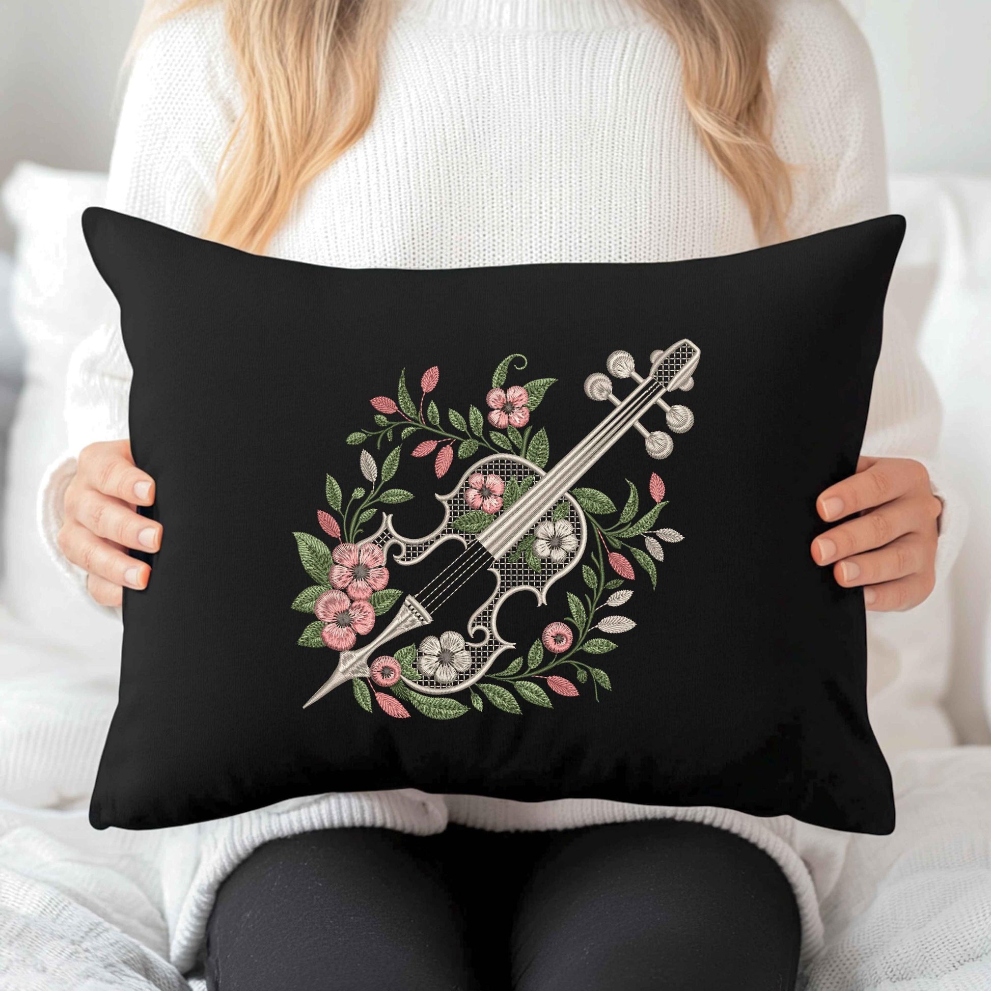 Floral Cello Embroidery Design π» Botanical Musical Pattern | Machine Embroidery File β 6 Sizes
