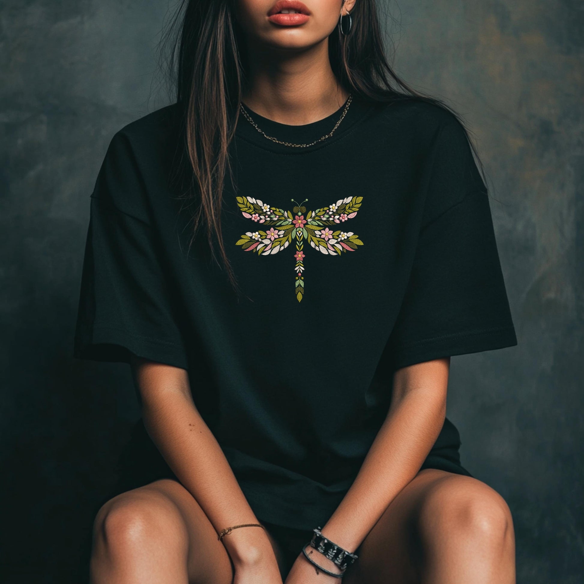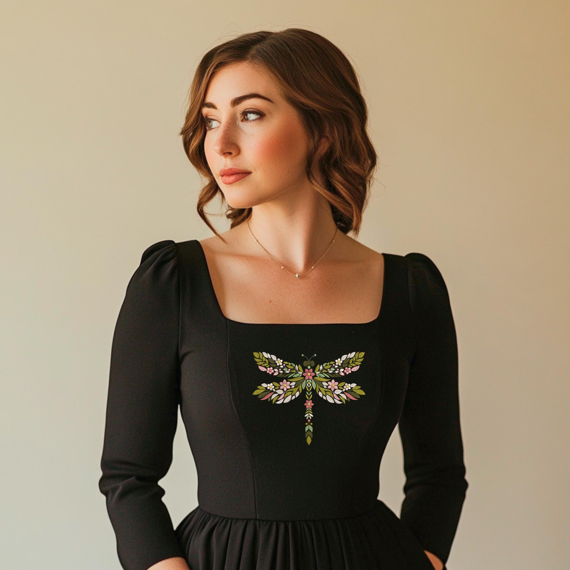 Floral Dragonfly Machine Embroidery Design - Nature-Inspired Pattern, Insects Embroidery, Dragonfly Pattern, Floral Wings Embroidery Pattern