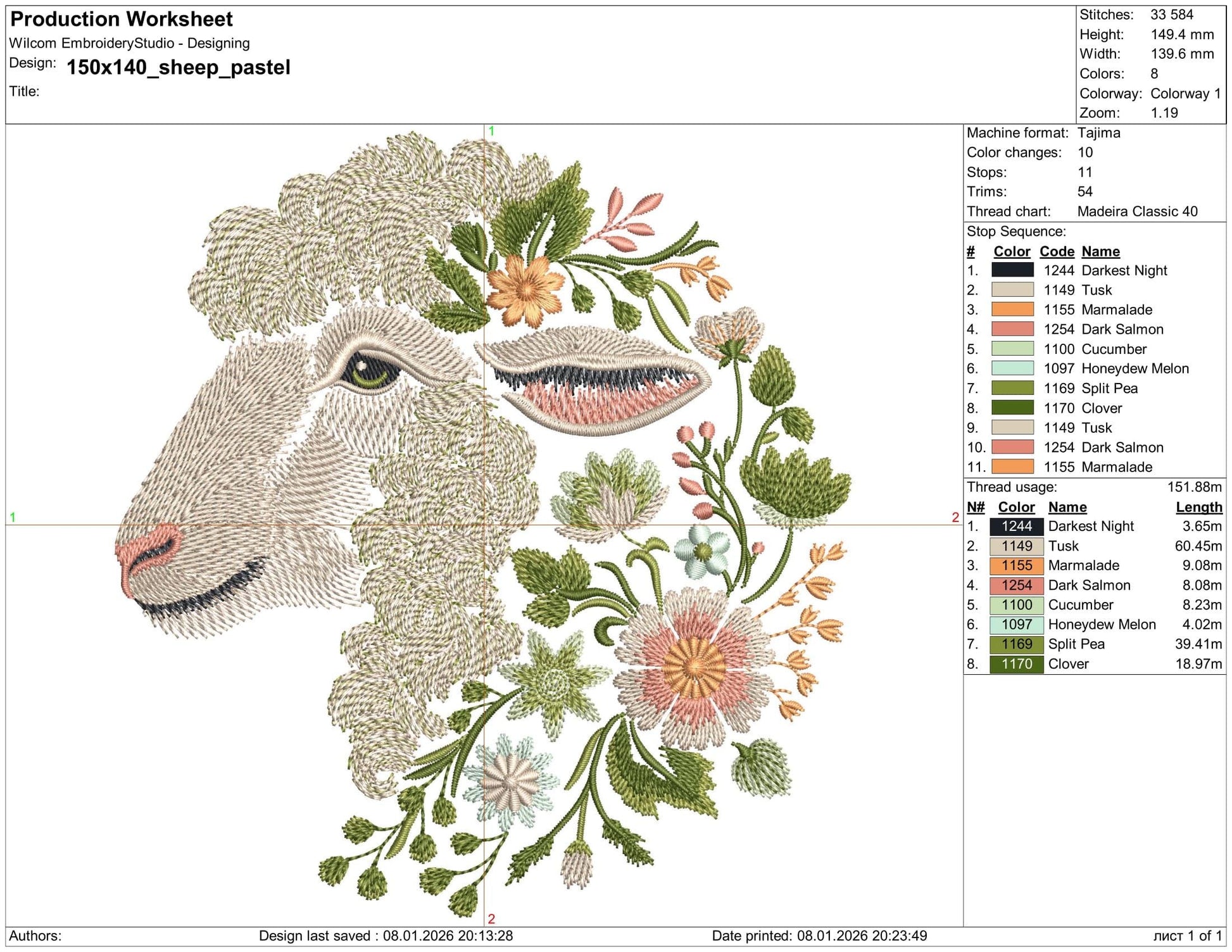 Brighten your projects with this elegant machine embroidery design: a sheepβs head formed from delicate pastel flowers, leaves, and botanical details. Perfect for hoop art, apparel, nursery decor, gifts, and home textiles.