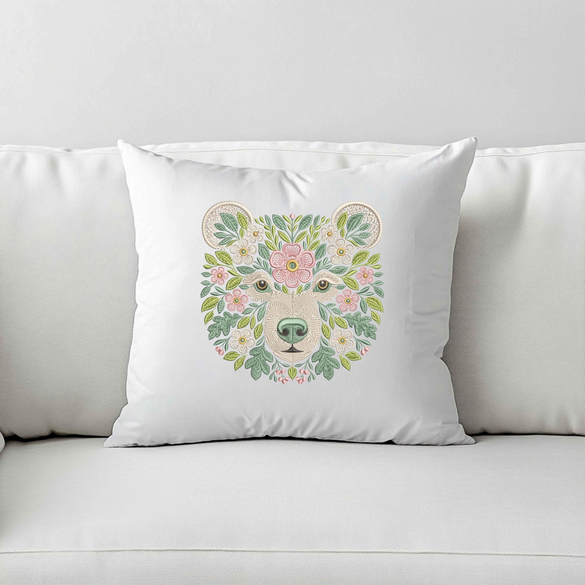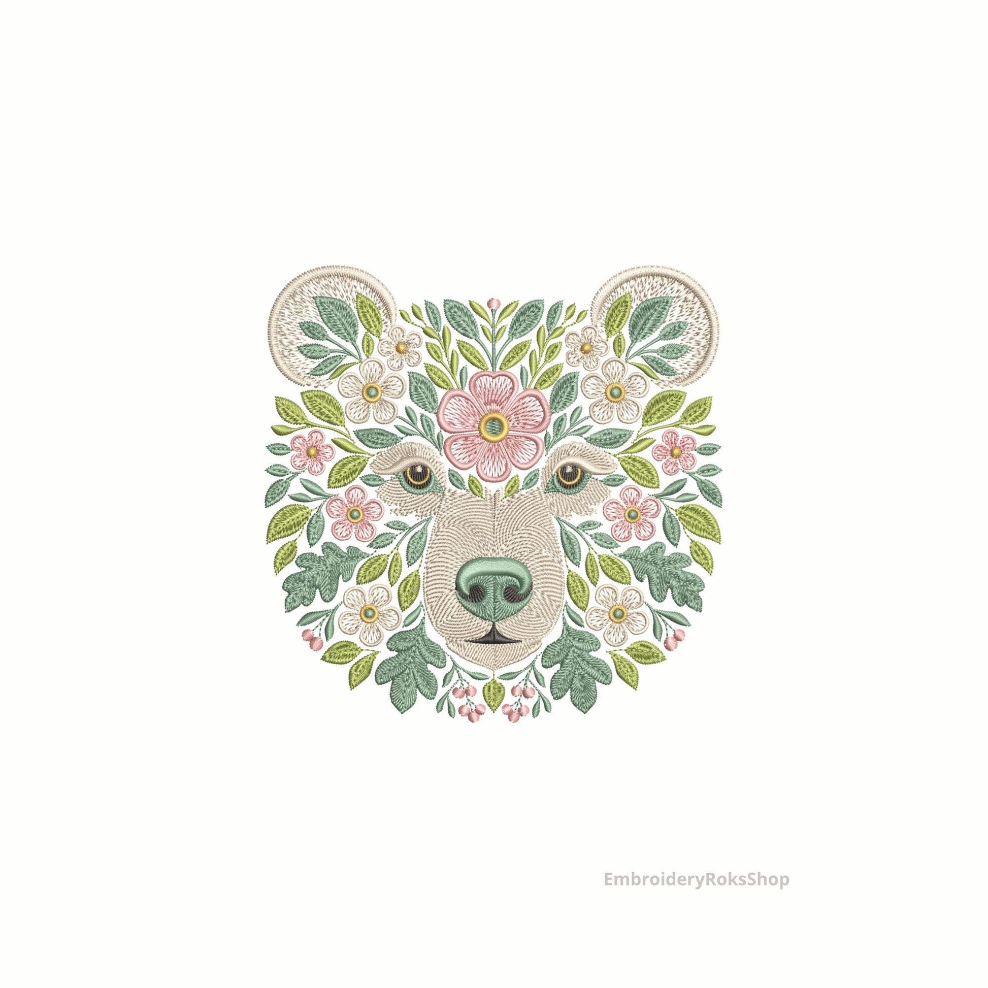 Flower Bear Embroidery Design, Intricate Animal Embroidery design - Unique Nature-Themed Machine Embroidery Pattern - Instant Download PES