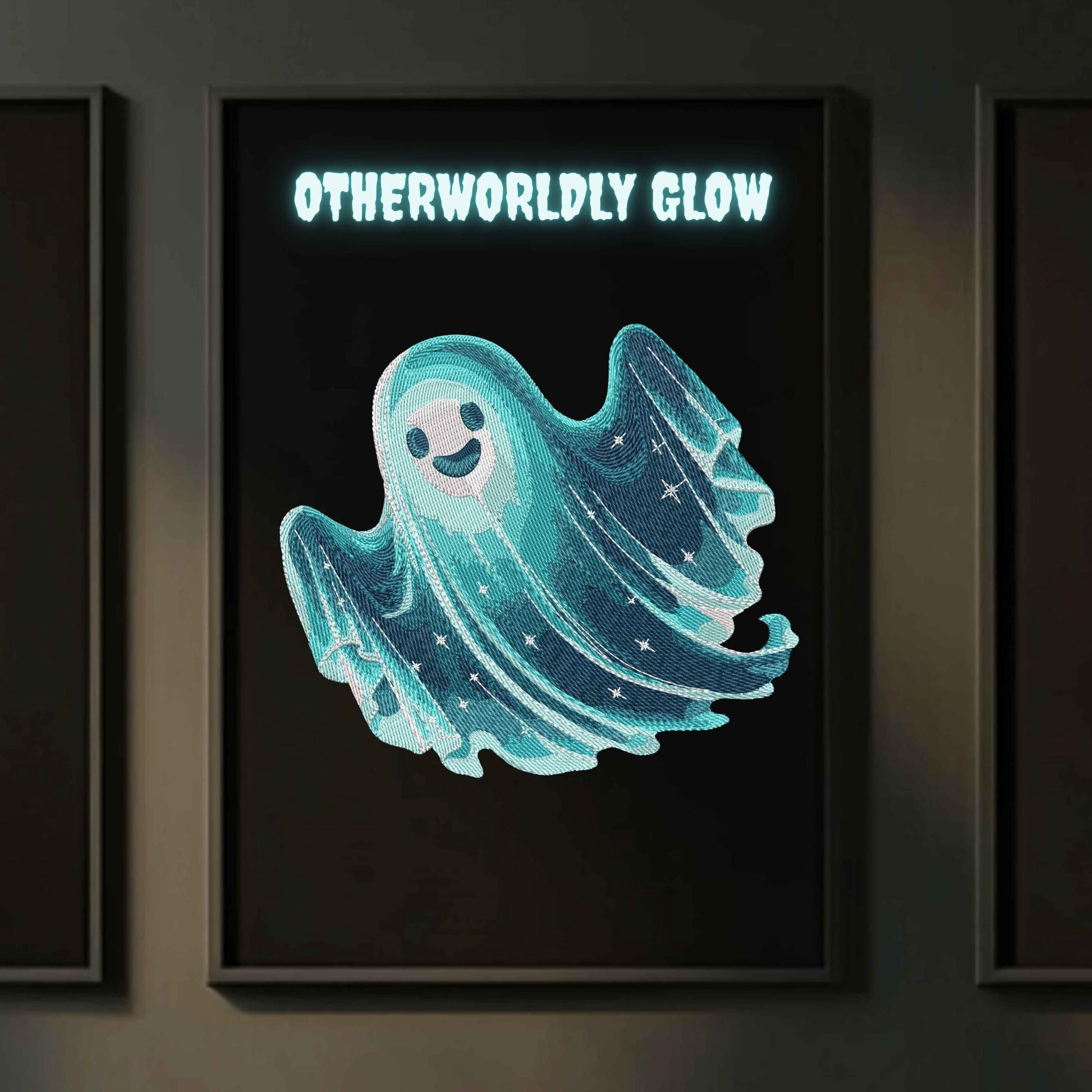 Get into the spooky spirit with this whimsical Night Ghost design! Perfect for Halloween-themed embroidery projects such as clothing, tote bags, home decor, or framed art pieces. This intricate design features a smiling ghost surrounded by stars and a dreamy, teal color scheme. ๐โจ