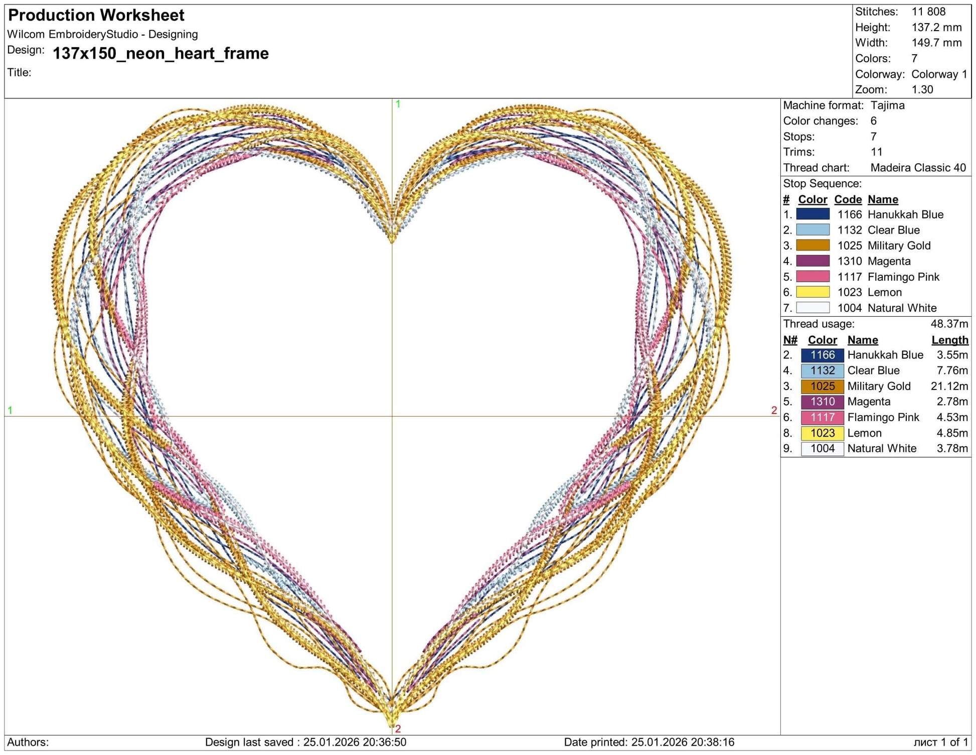 This beautiful neon heart frame design is perfect for adding a touch of romance to your Valentine’s Day projects! With vibrant neon colors and a floral heart shape, this design is ideal for all your machine embroidery needs. Whether you're creating gifts for loved ones, home décor, or accessories, this design will stand out beautifully. 🌸💝
