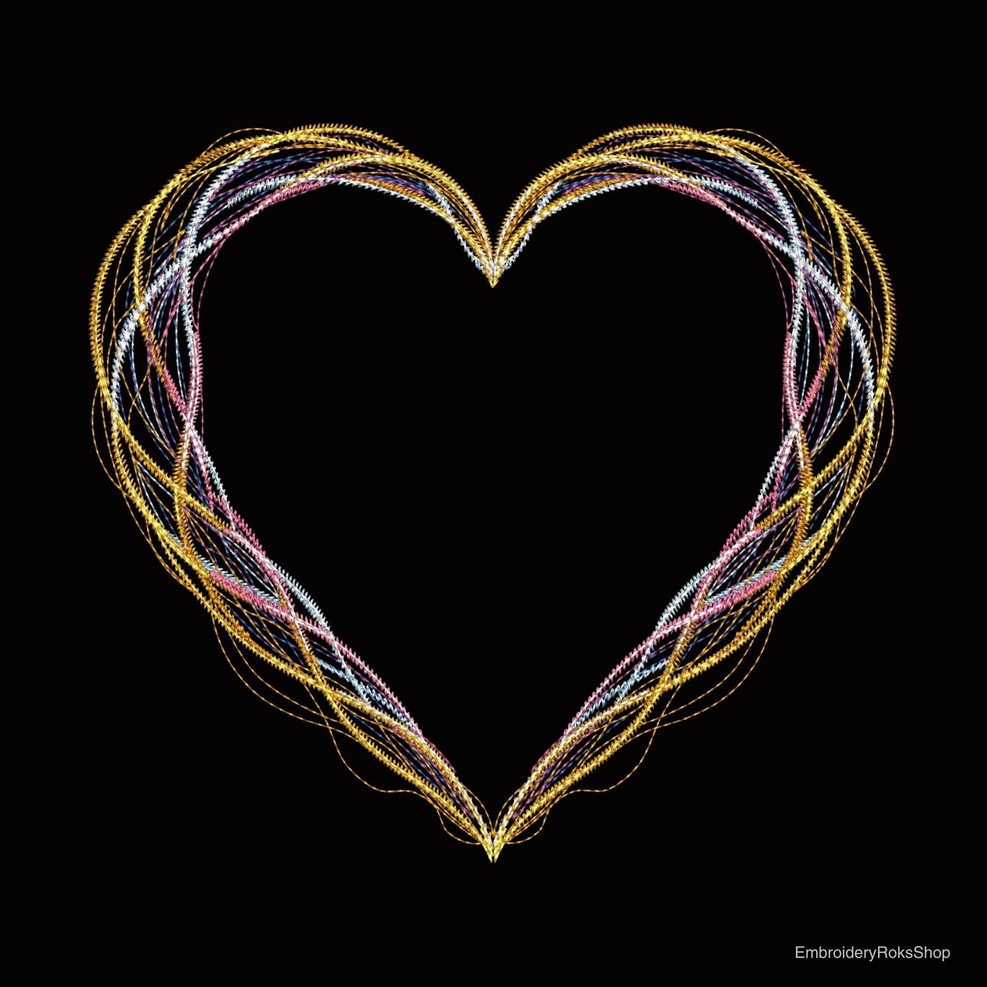 Neon Heart Frame Embroidery Design – Machine Embroidery Pattern for Valentine’s Day, Floral Heart PES, Floral Machine Embroidery Pattern DST