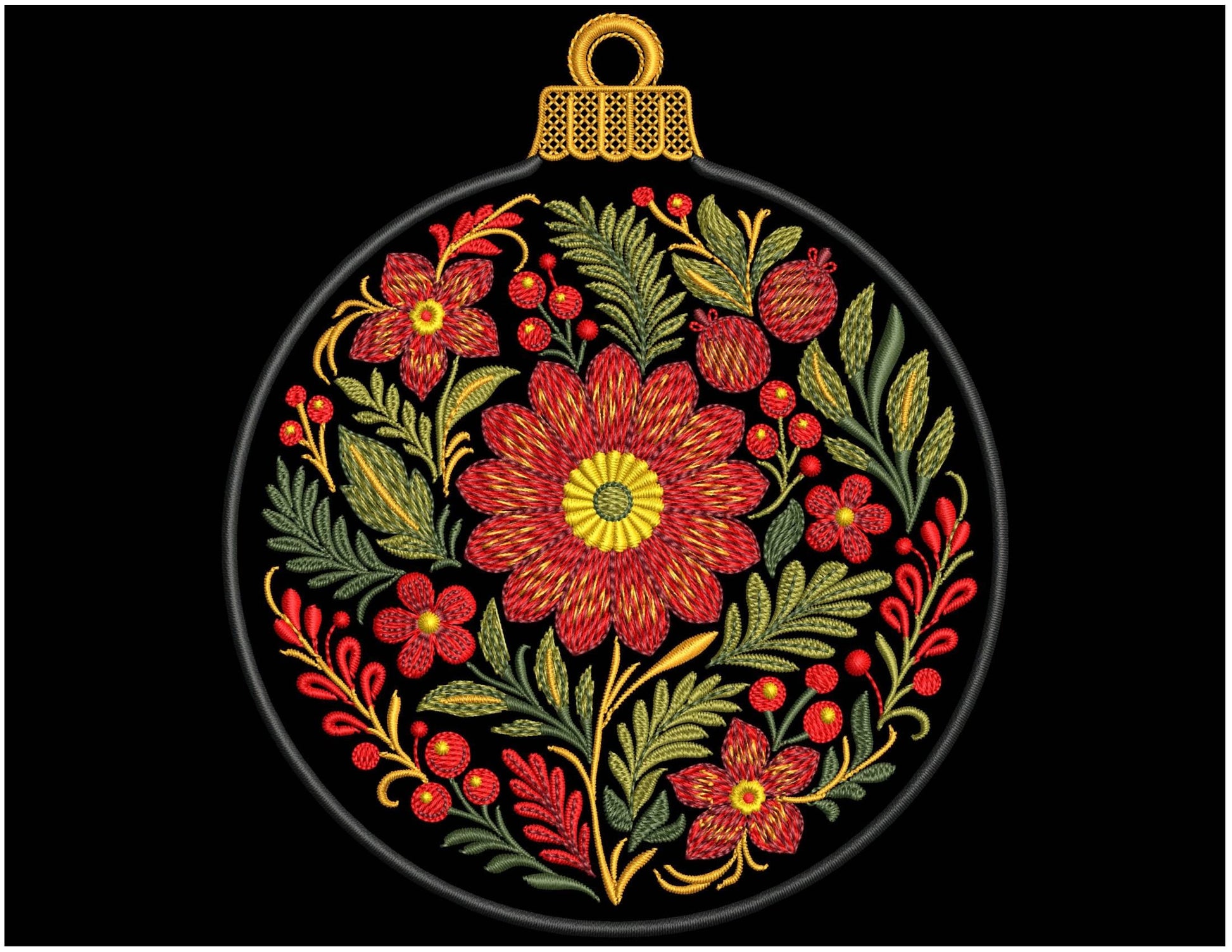Petrykivka Christmas Ornament Embroidery Design PES, Ukrainian Floral Bauble Machine Embroidery Pattern, Petrykivka Folk Art Embroidery DST