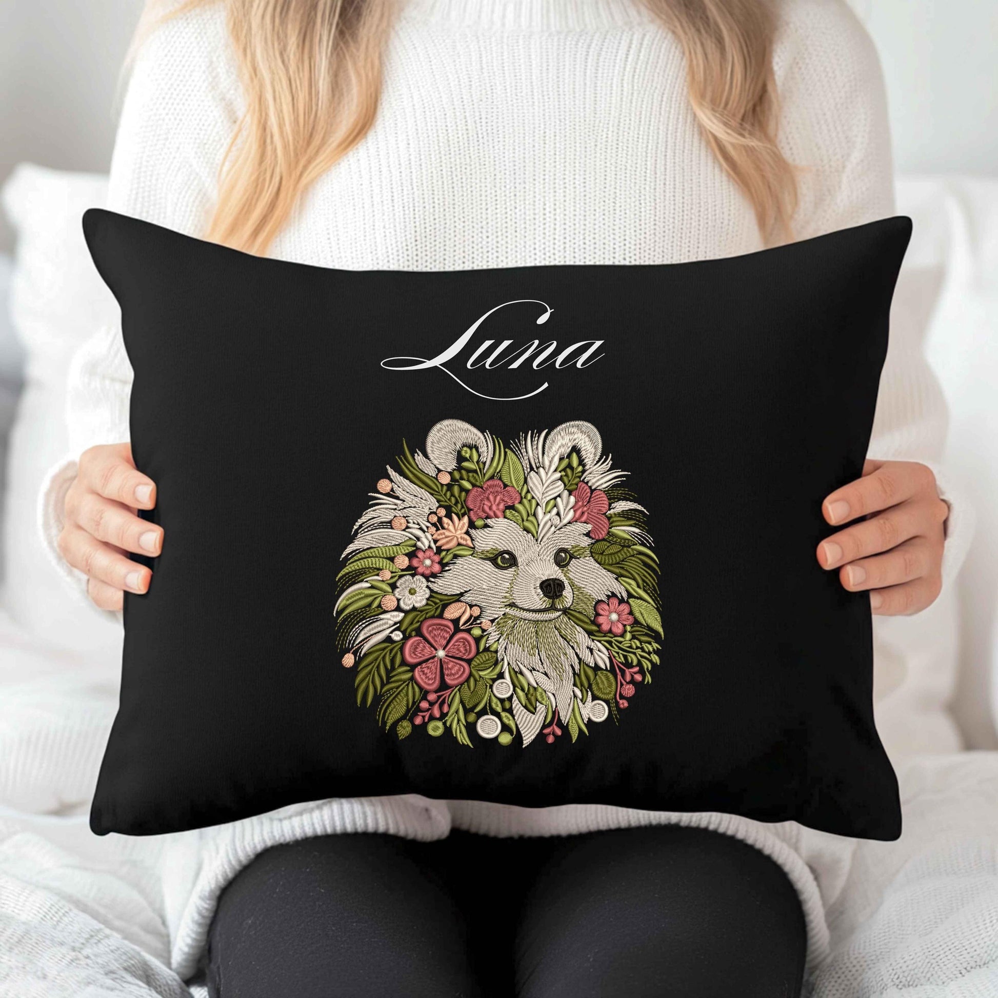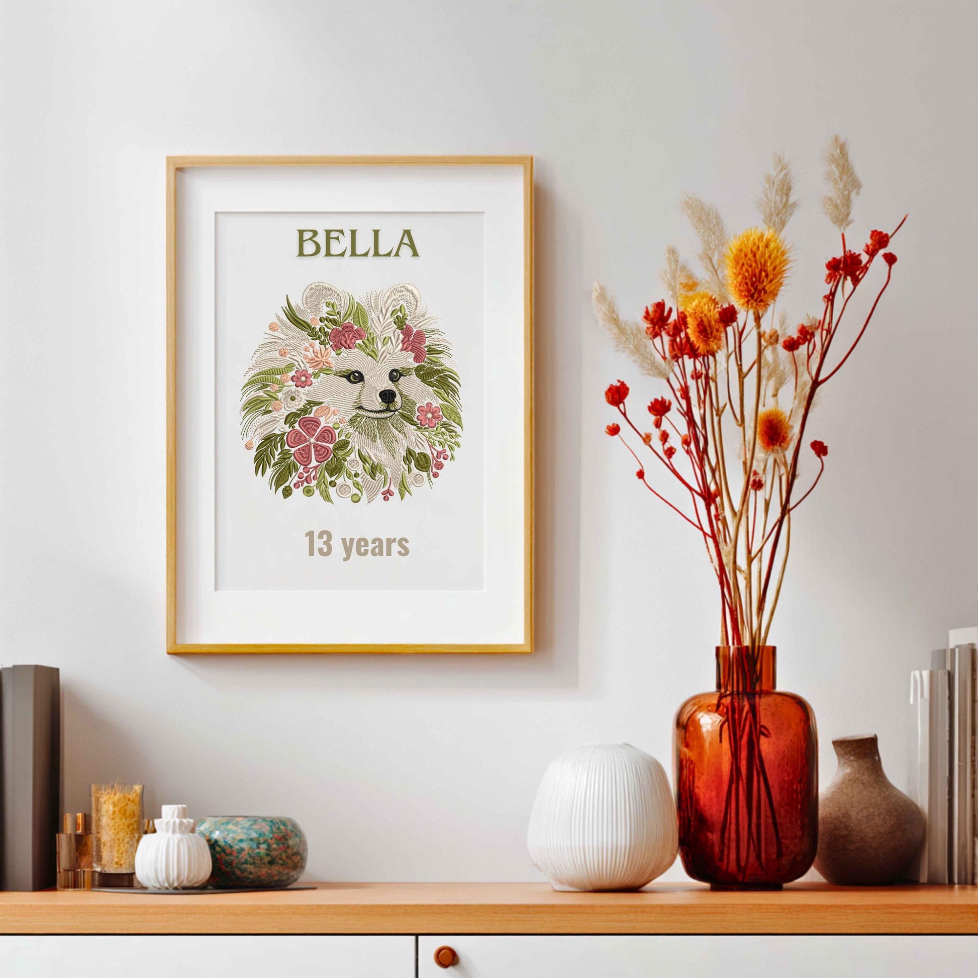 Perfect for decorating clothing, tote bags, pillows, or framed wall art, this detailed embroidery file combines the beauty of nature with the cuteness of a fluffy Spitz, surrounded by floral elements πΏπΌ.