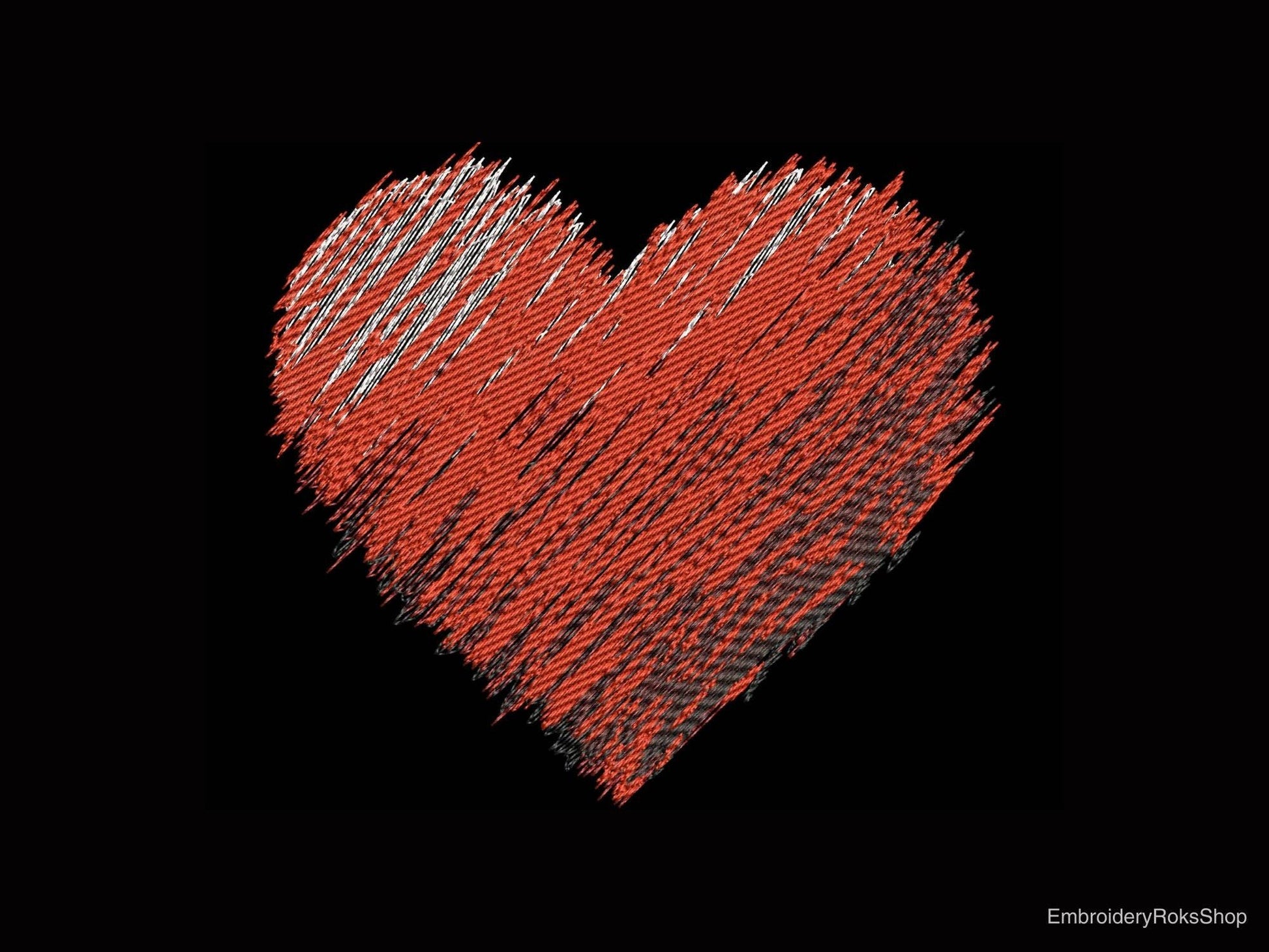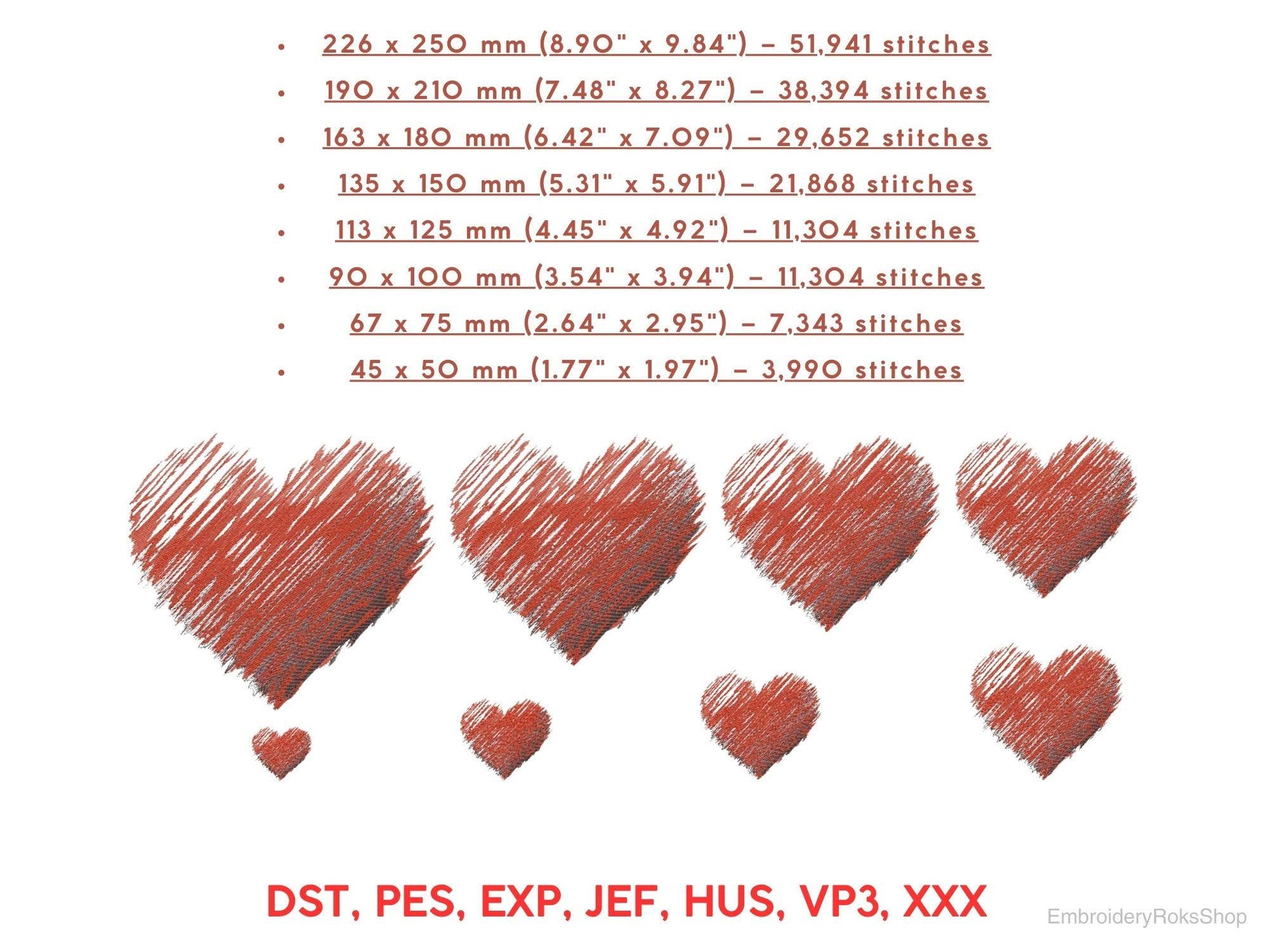 Scribbled Heart Embroidery Design PES, Valentine Machine Embroidery, Sketch Style Heart PES DST, Love Embroidery File, Romantic Pattern Pes