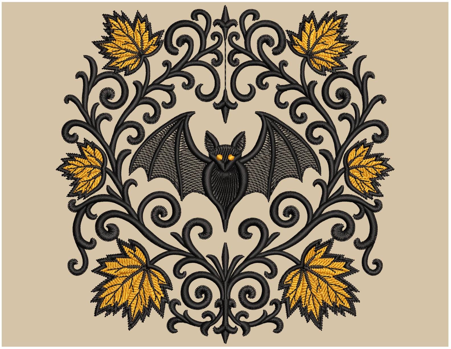 The Gothic Bat brings the spooky charm of Halloween combined with the beauty of autumn leaves. Whether you are creating spooky apparel, autumn home decor, or personalized Halloween gifts, this bat embroidery design will make your projects stand out. π¦π