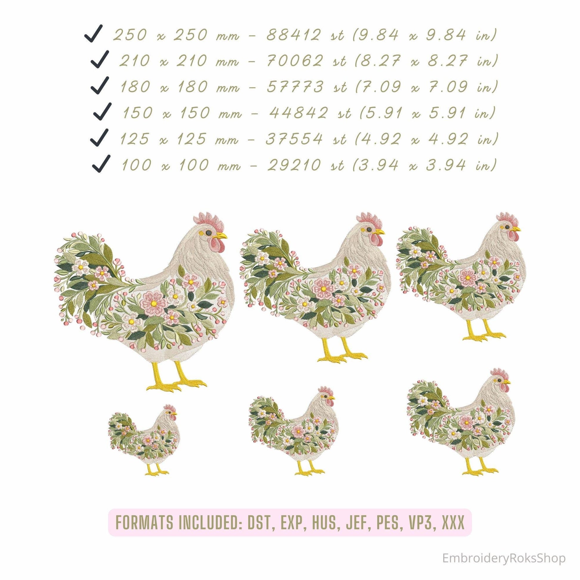 Spring Floral Chicken Machine Embroidery Design, Farmhouse Hen Embroidery File, Rustic Country Floral Chicken, Chicken PES, DST, JEF File