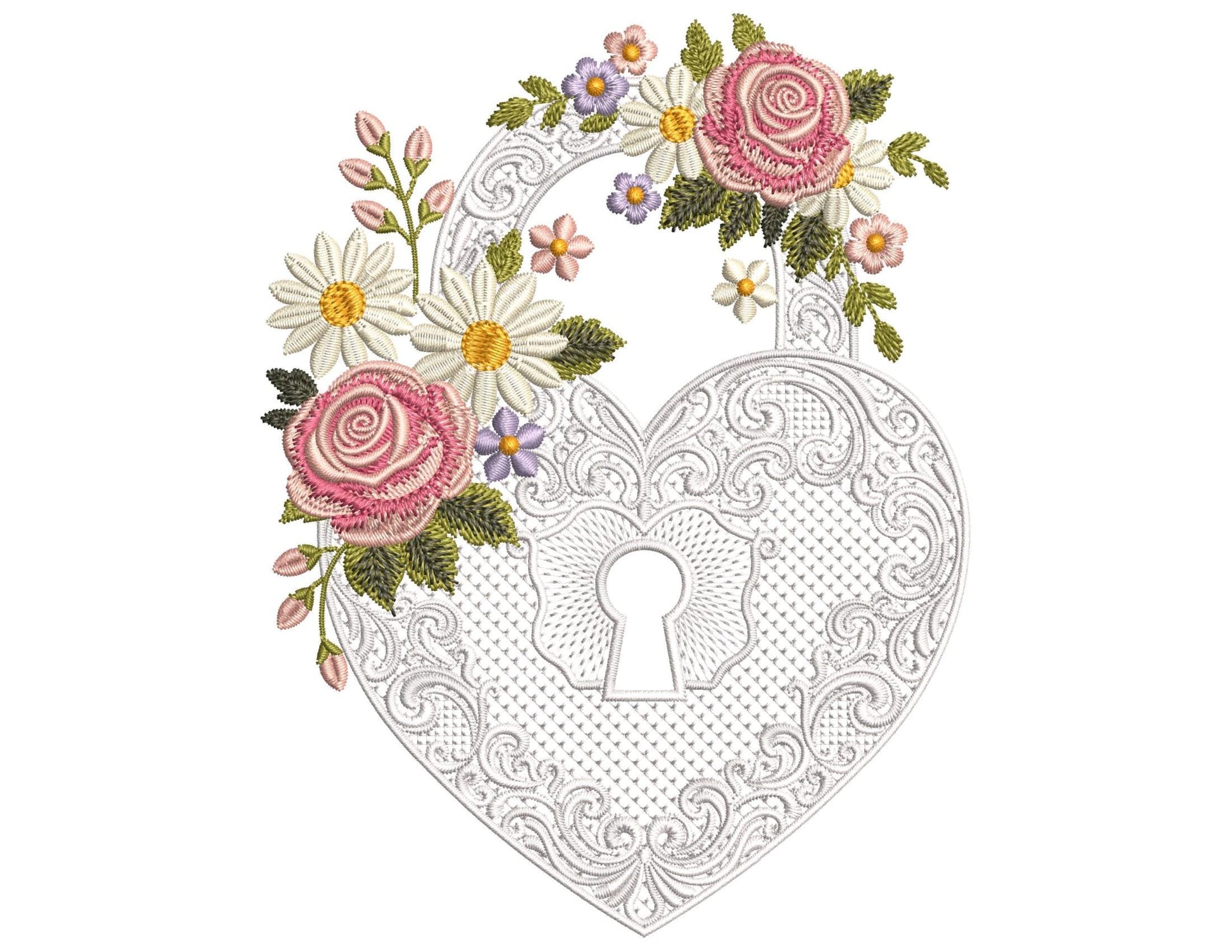 πΆ Add elegance and charm to your stitches with this HEART PADLOCK DESIGN WITH FLOWERS β a perfect harmony of nature and the art of embroidery, ready to bloom in your next embroidery project πΈπͺ‘